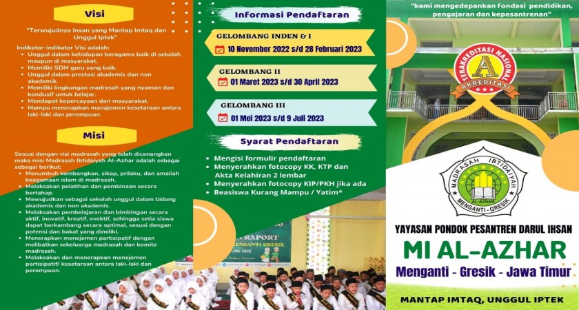 Telah Dibuka Pendaftaran Peserta Didik Baru (PPDB) 2023-2024 di MI Al-Azhar Menganti Gresik